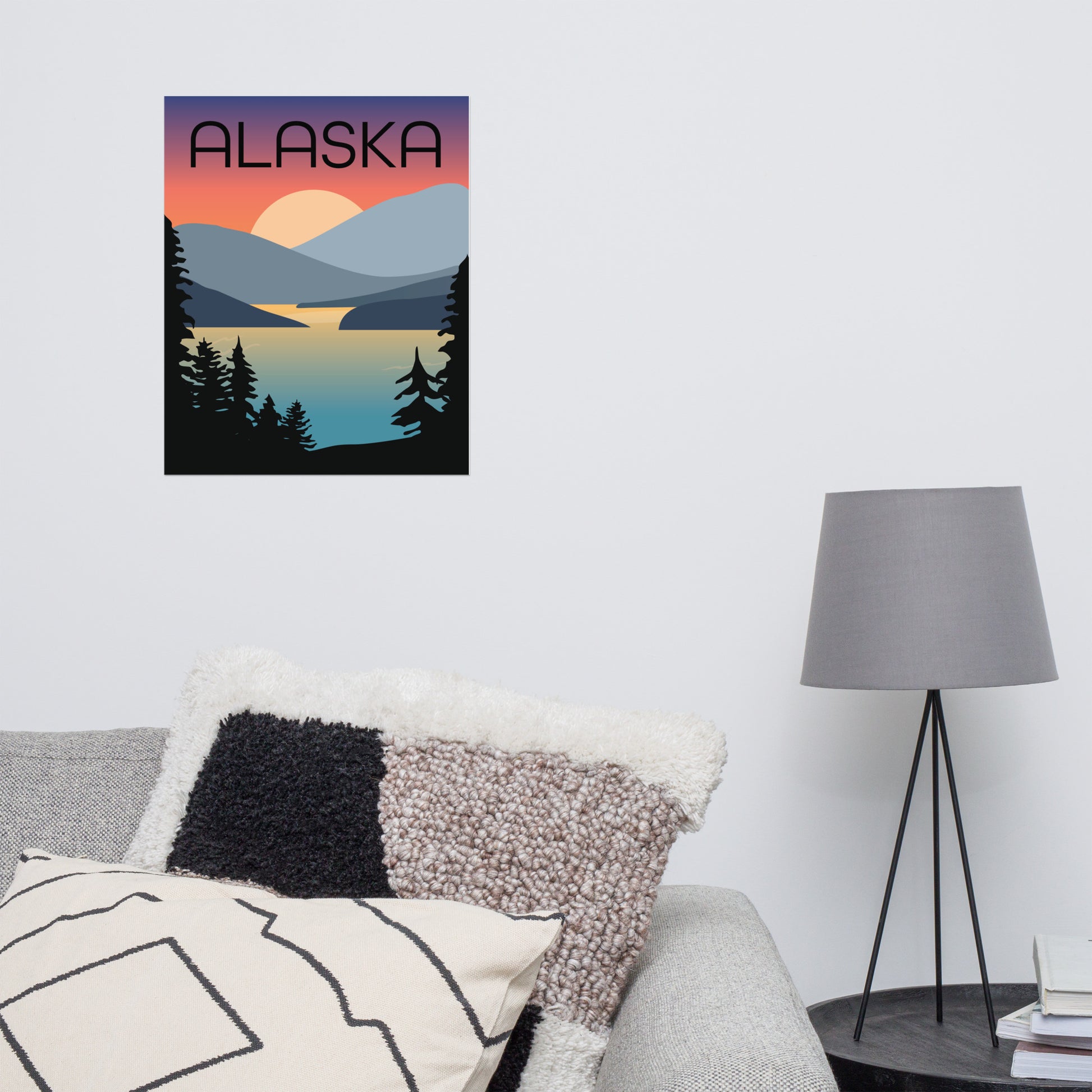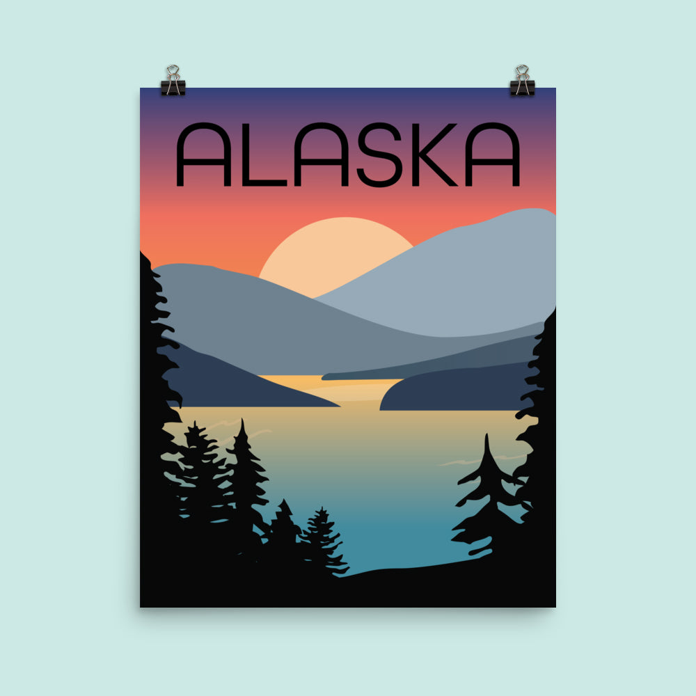A twist on vintage travel posters featuring one of the world's best sunset-viewing spots. Printed on thick and durable matte paper, these posters are designed by Jennie B. in Alaska.